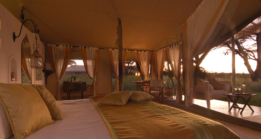 Das exklusive Joy´s Camp liegt im Shaba Game Reserve, einem abgelegenen Safari Gebiet, was sich nördlich der Samburu befindet. Dieses Reservat ist ein Geheimtip und wenig besucht. Es ist hier meist warm, trocken und staubig. Der Fluss Eyaso Nyiro zieht das Wild an. In dem kleinen Luxus-Safari-Camp befinden Sie sich auf dem Gelände, wo Joy und George Adamson mit Ihren Löwen lebten und und Ihre bekannten Bücher schrieben. Hier haben Sie die Möglichkeit auch Nachtfahrten und kleine Buschwanderungen zu unternehmen. Die Lodge hat nur 10 Safari-Zelte im Beduinenstil, die sich im Gelände verteilen, die Badezimmer sind sehr ausgefallen gestaltet und der besondere Clou ist die eigene Veranda vorm Zelt, von der aus Sie oft die Tiere am nahen Wasserloch beobachten können. Ein naturnaher Pool lädt zum Relaxen nach dem Gamedrive ein. Die Safari-Zelte sind sehr hochwertig und bestens ausgestattet. Die Mahlzeiten und der Service außergewöhnlich gut, man verwöhnt Sie mit norditalienischer Küche. Der Somali-Strauss ist das Wahrzeichen des Camps und oft zu sehen. Der Tagesablauf wird flexibel nach den Wünschen der Gäste gestaltet genau wie die Gamedrives, die in offenen Allradfahrzeugen stattfinden. Da das Camp das Einzige hier ist, treffen Sie kaum andere Autos und haben alles für sich allein. Sie sehen die endemischen Arten des Nordens: Generuk, Rothschildgiraffen, die Grevyzebras, Giraffen, es gibt Löwen, Geparden und Leoparden hier. Das Wild ist etwas scheuer als in manchen anderen Gebieten, doch ist die Landschaft wild und einzigartig, echtes Afrika. Kinder jeden Alters sind hier willkommen!